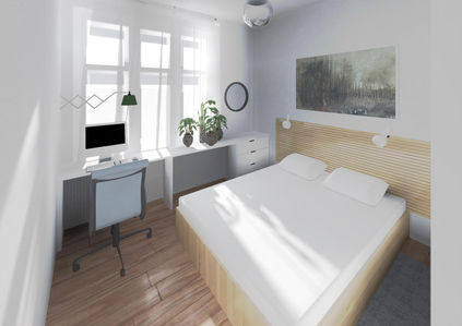 Návrh se zabývá rekonstrukcí bytu v činžovním domě na Letné. Nenáročnou změnou dispozic byt splní představy majitelů o současném bydlení – obývák spojený s velkorysou kuchyní včetně ostrůvku, dvě koupelny přístupné pro všechny členy domácnosti, minimální ložnice s pracovním koutem, prostorný pokoj a dostatek úložného prostoru. Návrh počítá se zachováním původních prvků – oken, dveří, podlah (terrazzo, parkety) a jejich doplněním v podobném duchu a na přání majitelů v převážně černobílé barevnosti.