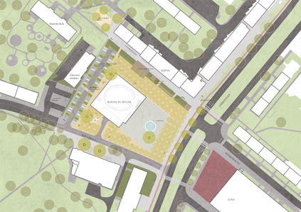 Zadáním soutěže byl návrh veřejného prostranství při kostele sv. Ducha v Ostravě – Zábřehu. V současnosti je místo zanedbané a převážně využívané jako parkoviště.