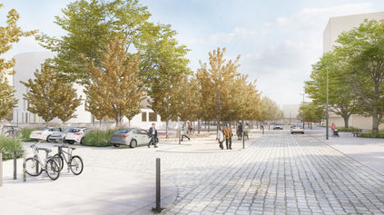 Procházím kolem obchodů, míjí mě cyklista a cinkající tramvaj, na předzahrádce kavárny se směje rodina s dětmi. Z otevřeného městského prostoru skrze pás šumících a vonících travin, jen se ho dotknout, vcházím do stinného prostoru stromů, z hrubé betonové dlažby došlapuji na mlat, jako by to byl písek. Po pár krocích stojím na ploše náměstí s vodní hladinou a stromem, slunce je opět ostřejší a jasně vnímám celou siluetu kostela, která předtím jen prosvítala mezi kmeny stromů a vystupovala nad koruny ve formě věže s křížem. Procházím kolem vodní plochy a odrazu věže k hlavnímu schodišti, před dveřmi se ještě otočím a rozhlédnu se. Přede mnou hranice korun stromů odděluje město, které jen jemně prosvítá. Můžu vstoupit.